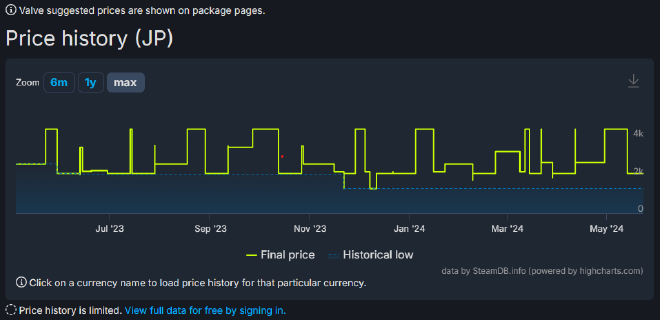 「セール中の気になるゲームを見つけたけど、過去のセールと比べてお得なのかな……」と悩むことがあります。 こんな時に使えるのがゲームの最安値と価格チャートを表示する機能です。