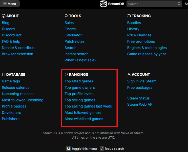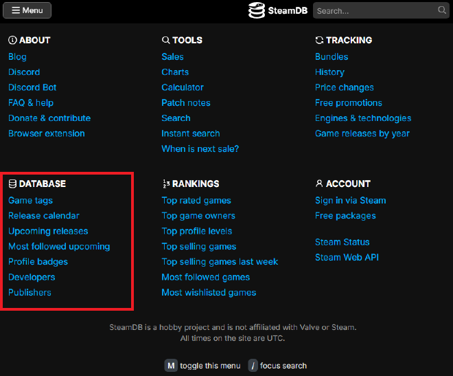 ただし、英語サイトであることから使い方に戸惑う人も多いはずです。 そこで本記事では、SteamDB の主要な機能を紹介します。 目的別にどのような操作をすれば欲しい情報が手に入るのか、具体的に解説していきます。