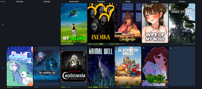 選択するとこのような画面が表示されます。 この画面から日付別でリリースされるゲームを確認可能です。