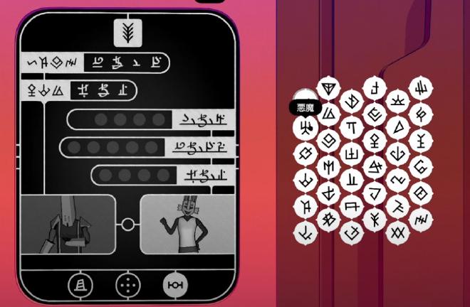 真エンドでは表面的な理解を超えた、価値観の共有が描かれます。 空中に浮かぶ一つの図形が回転し、それに伴って各民族のグリフが次々と現れます。 グリフは、修道院の言語で「神」、兵士の言語で「義務」、吟遊詩人の言語で「美」、錬金術師の言語で「変性」、隠遁者の言語で「孤独」を意味します。